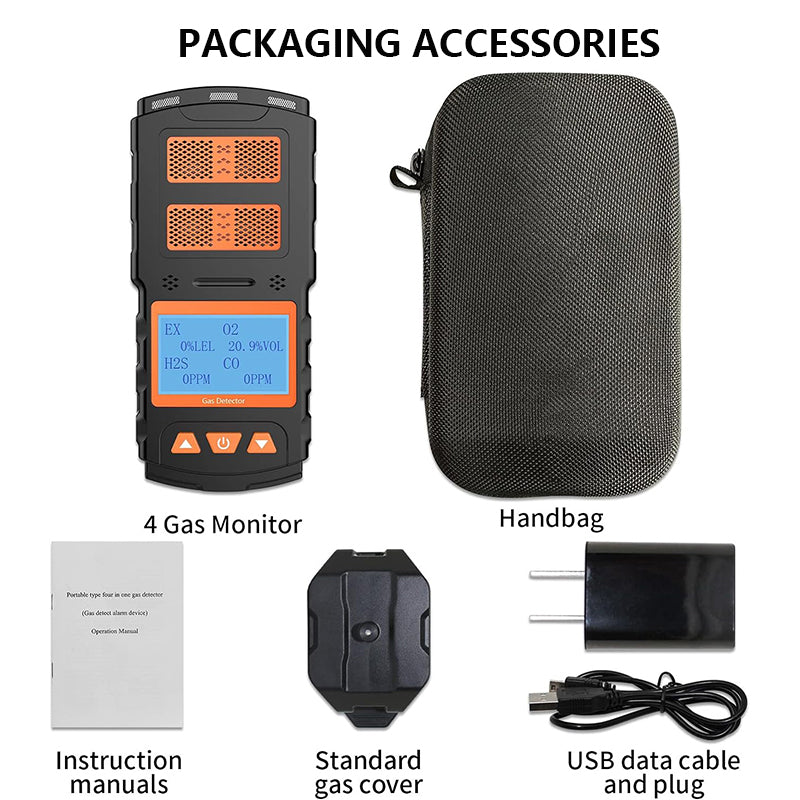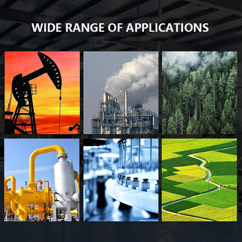 Ce détecteur de gaz à 4 composants convient à de nombreux secteurs d'activité, notamment le pétrole, la chimie, la protection de l'environnement, la métallurgie, le raffinage, la distribution de gaz, la biochimie, l'agriculture et d'autres industries, ainsi que pour un usage personnel.