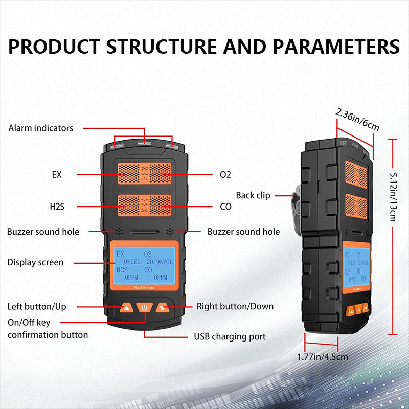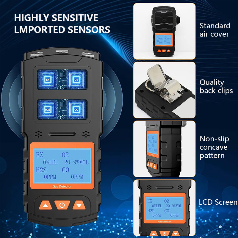 Le X-4 est un détecteur portable de 4 gaz : monoxyde de carbone (CO), oxygène (O2), sulfure d'hydrogène (H2S) et gaz combustibles (LIE). Il est doté d'un boîtier en matériau haute résistance et de capteurs importés, avec une durée de vie de 2 à 5 ans (LIE, H2S, CO : 2 à 3 ans ; O2 : 5 ans).